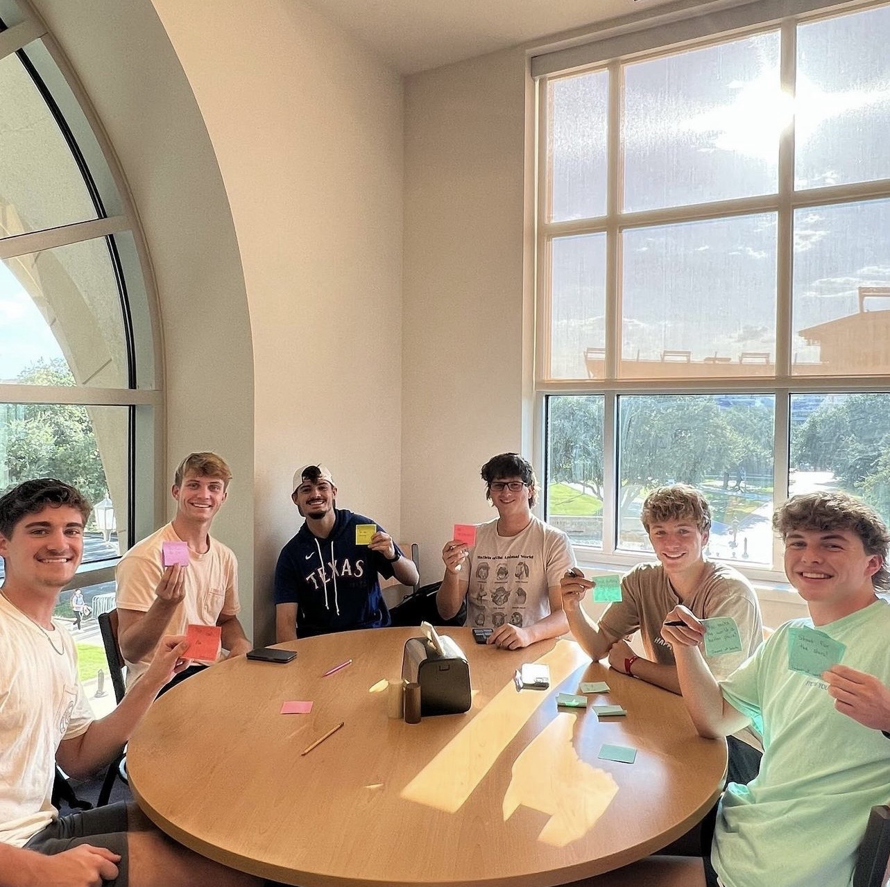 Since the beginning, weekly meetings have included writing kind messages on sticky notes and hanging them up in dorm halls and other campus buildings for students and faculty to read.