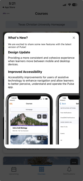 While many students and faculty at TCU may be familiar with D2L, a new contract with them will include a different package that contains new and updated features. This version contains an updated interface that can incorporate TCU branding. It will also add features currently unavailable at TCU, such as a taskbar listing due assignments on the home page. D2L has taken consumer feedback into account and prioritized a “one-click experience” to reduce the amount of time spent sifting through different class pages and folders,” Danielle Burt, the senior solution engineer for D2L, said.