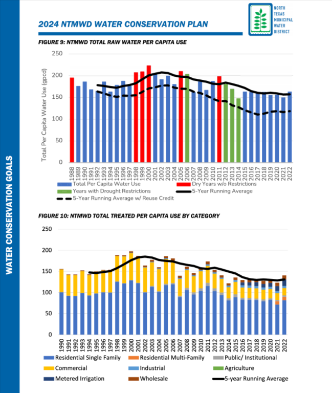 Since the early 2000s, NTMWD has reduced the five-year average GCPD within the communities they serve and the 10-year plan is being aggressively pursued to conserve water in their service perimeter.