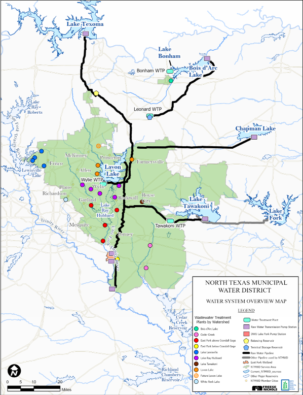 Map of NTMWD's raw water supply system and existing sources of supply. (Courtesy of NTMWD 2024 Water Conservation Plan)