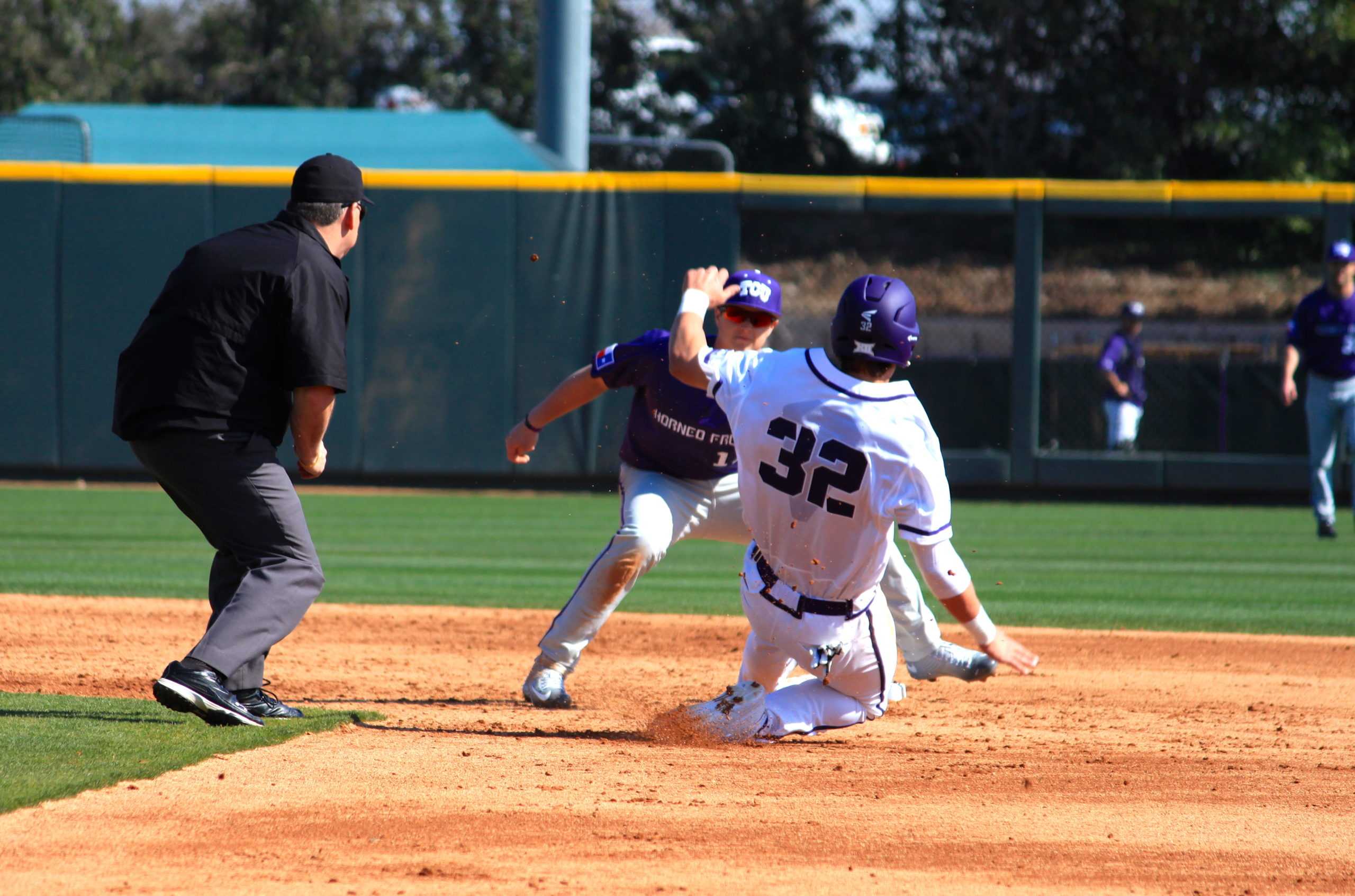 It’s a good thing for TCU baseball that the official season doesn’t start until next weekend, because the Frogs faced perhaps their toughest matchup of the entire season on Saturday — their former teammates. NL Cy Young Award winner Jake Arrieta (who never left the dugout), Brandon Finnegan, Cody Jones, and other Horned Frog legends suited up in purple and white and beat the current varsity squad 3-1 in a contest that was as friendly as it was hard-fought. Hundreds of fans showed up at Lupton Stadium to watch the annual alumni game. This year’s edition featured the most returning alums in the game’s history. Finnegan, who pitched in the 2014 World Series for the Kansas City Royals and is currently on the Cincinnati Reds roster, started on the mound for the alumni, while Rex Hill took the bump for the varsity. Hill surrendered the first run of the game in the first inning, when Bryan Holaday doubled home Chad Huffman. The alumni scored another run in the fourth as Taylor Featherston ripped a double to score Jeremie Fagnan. Featherston added a triple in the ninth inning and give the alumni an insurance run as Kyle Von Tugeln singled him home. The fans were treated to an exciting old-versus-new matchup in the fifth inning when former TCU ace Preston Morrison faced off against highly-touted freshman Luken Baker. Baker got the better of Morrison at-bat as he launched a double to left field. Baker scored the varsity’s lone run later in the inning on a Dane Steinhagen base hit. The Frogs officially open up their season next Friday against Loyola Marymount University. First pitch is scheduled for 6:30 p.m.