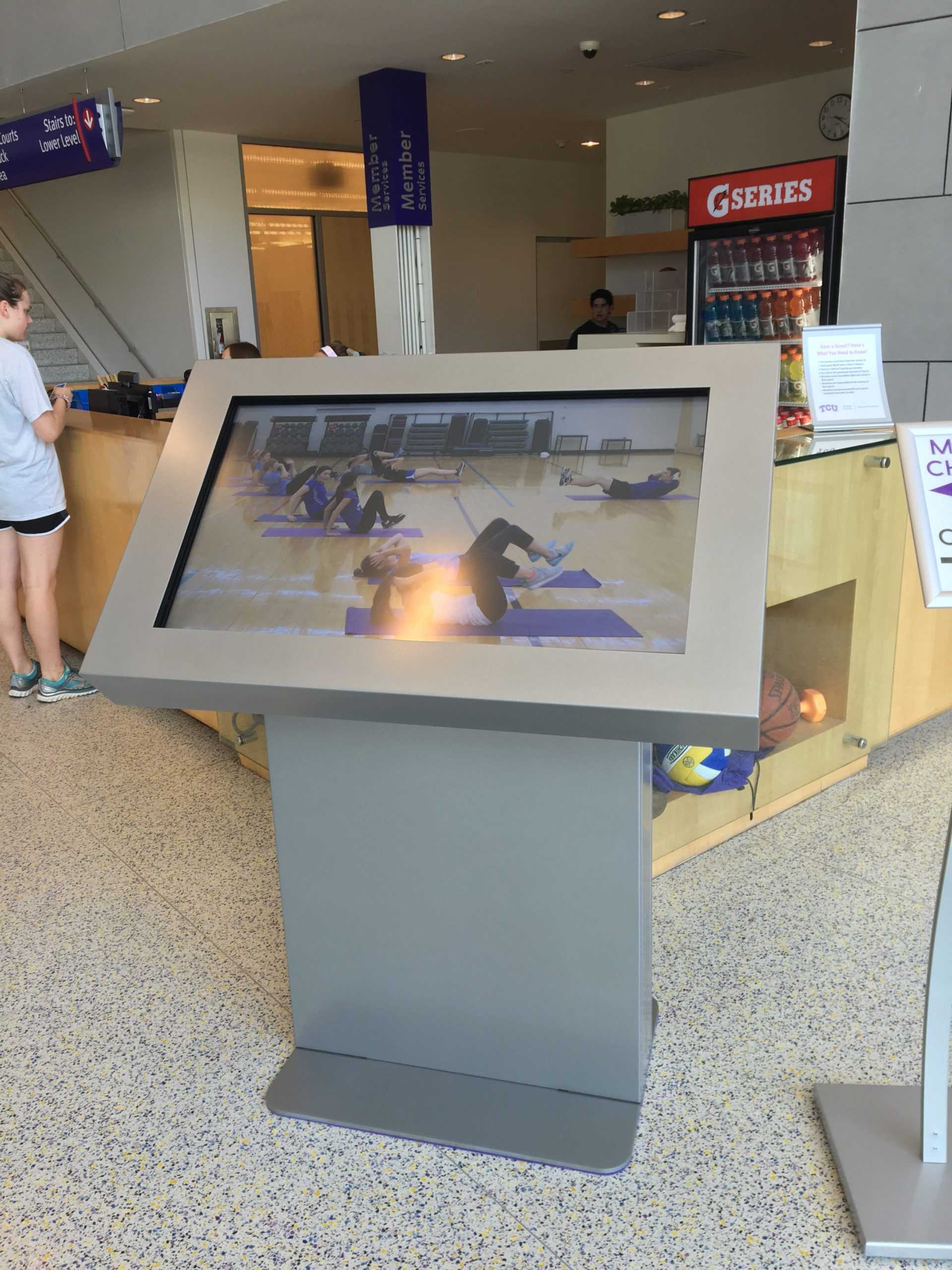 Students looking for a workout at the University Recreation Center this semester are likely to find new equipment. Over the summer, officials replaced broken equipment and hired new instructors for group exercise classes in response to a user survey done in the spring. The new equipment includes dumbbells, stretching bands, medicine balls, kettlebells and a new multi-gym unit in the weight room.The rec center added new dumbbells over summer break. (Colleen Mortell / TCU360)The new multi-gym unit can be found in the weight room. (Colleen Mortell / TCU360)It is also adding interactive informational screens displaying ads and schedules for upcoming exercise classes. A new interactive screen can be found at the entrance of the rec center. More will be installed by the end of the month. (Colleen Mortell / TCU360)“As part of our assessment process, every year we’ll do our general campus recreation survey to reach out to the TCU student body; as well as faculty, staff, and also community and alumni members,” said Jay Iorizzo, director of Campus Recreation. He said the information from the surveys allow the rec center to “take away things we’re doing well” and “things we can certainly approve on.” The survey informed the rec center of problems with available equipment.“A common thing was that we wish there was more availability of machines,” Iorizzo said.Available equipment can be hard to find during the facility’s busiest hours, 3-7 p.m.“There’s sometimes, like in the afternoons, when it’s really crowded,” said Jake Siegert, a senior entrepreneurial management major. “But I think that’s just when a lot of people are free.”Sophomore Grace Lamb said she usually has trouble finding open StairMasters, one of the most popular machines. “There’s only four of them,” said Lamb, who’s a pre-business major. “I typically come at pretty popular times, right after class in the afternoons, so usually a lot of the machines are taken.”Some students said they schedule their workouts at other times in the day in order to avoid the high traffic. Andrea Baumann, a sophomore strategic communication major, said she usually works out late at night when the facility is not busy.The shortage of available machines is also a result of broken equipment.“Due to a high demand and high traffic, [StairMasters] take a lot of use. So, therefore, we do see minor repairs that are more frequently needed on those pieces than some other pieces,” Iorizzo said.Popular demand of the StairMasters leaves some machines in need of repair. (Colleen Mortell / TCU360) The rec center has a maintenance company that repairs broken machines on a regular basis. The rec center is upgrading its equipment.When the rec center first opened in 2003, there was only one StairMaster. Student Government Association purchased two additional StairMasters due to the popularity of the machines.The facility is looking into purchasing more StairMaster machines, and even some from other brands, Iorizzo said.