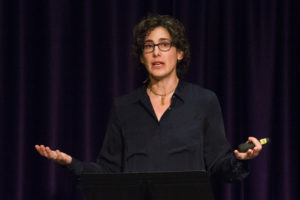 Producers Julie Snyder and Sarah Koenig speak on the production and reporting behind their podcasts, “Serial.” (Sam Bruton/TCU360) When “Serial” was launched in 2014, its producers weren’t sure if there would be an audience for their look into a contested murder case. “We would have been happy with 300,000 listeners,” said Julie Snyder, the show’s producer. After six weeks, “Serial” had over five million downloads. As of last week: 243 million. Snyder and host Sarah Koenig were on campus this week as guests of the annual Fogelson Forum hosted by the John V. Roach Honors College. They discussed discovering how melding podcasts with narrative journalism captured the interest of others. Season one considered the murder conviction of Adnan Syed. The second season dealt with the case of Bowe Bergdahl, who was held captive by the Taliban after deserting his post in Afghanistan. They said people compared “Serial” to cable shows like “Mad Men” and “Breaking Bad.” But they noted that while these shows are fiction, in “Serial,” the crime was real and journalists were reporting it.The women said that audiences were not accustomed to responding to journalism in the same way they would respond to television shows. One drawback was that people started speculating about who murdered Hae Min Lee if Syed isn’t guilty, they said.Snyder said they began to fear that the “privacy and respect for the people in the stories were violated.”“I felt like I got into their world more than I expected to,” said Koenig. Despite the surprising outcomes, Koenig said, “This is a worthwhile thing to do. We invented something.” “This does sound different from anything that’s happened before. It feels like there are more attempts at long-form investigative journalism,” said Koenig.A Beginning in RadioThe pair, who worked as radio producers on “This American Life,” were trying to jump-start a new show and decided to create one story with serial installments. Snyder said this “allowed [them] to explore context and tangents.” They started “Serial” in the basement of Koenig’s house, having to pause recording each time someone flushed a toilet upstairs.Host and producer Sarah Koenig gives the audience details about why Adnan Syed’s story was chosen for the podcasts. (Sam Bruton/TCU360)A year before the production of the podcasts, Koenig began researching and reporting.“I was captivated by this story,” said Koenig. She was looking into the re-investigation of a 1999 Baltimore case in which a young woman disappeared from school. Her body was later discovered buried in a city park. Adnan Syed is currently serving a life sentence for this murder and continues to say he is innocent.The first lines of the first episode demonstrate the premise of the series: “For the last year, I’ve spent every working day trying to figure out where a high school kid was for an hour after school one day in 1999…”Snyder said the idea of a series published over time instead of in one long installment was good because they “wanted the show to feel like it’s alive.”Snyder said that they were drawn to dense stories that live in the details and this can “create a storytelling problem.” “We need listeners to understand the significance of the details,” she said. “We wanted to bring people up to knowing as much about the case as we did so we could begin to talk about the larger issues.”Snyder said a key element in Koenig’s reporting was communicating that she didn’t always know what was factual. “It puts you in a really vulnerable position to admit uncertainty,” said Koenig. “Spending a lot of time talking with one person is psychological and emotional. The confusion and discomfort on my part were important to the story.”The women said they were in the position of introducing the whole story to the listeners because not many people knew about this crime.“We wanted everyone in the story to be as human and three-dimensional as possible,” said Koenig.This goal couldn’t have been accomplished without long hours of work. Koenig has 42 hours of taped phone calls between her and Syed. This time was boiled down to 10 hours of published podcast about him.Nearing the end of reporting, the women said they realized it was obvious they couldn’t solve the crime. One realization they conveyed to the audience is that there is a lack of self-reflection in the criminal justice system. “I find it shocking,” said Snyder. “The crime could not have happened the way the state said it did.”Today, Koenig receives letters from prisoners who ask her to look at their cases. There are two of these letters on Koenig’s desk now, waiting for her return.