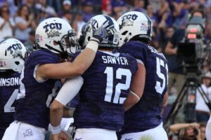 TCU fell to Texas Tech in double overtime, 27-24, after Red Raider kicker Clayton Hatfield nailed a 37-yard field goal. Texas Tech now leads the all-time series over TCU 31-25-3. Here are five takeaways from the Horned Frogs performance. 1. Foster Sawyer replaced Kenny Hill as quarterback TCU quarterback Kenny Hill threw a deep ball to the end zone that was intended for KaVontae Turpin late in the third quarter, but was intercepted by Texas Tech defensive back Douglas Coleman in the end zone. After Texas Tech punter Michael Barden bobbled the snap on a punt attempt, TCU began their next possession on the Red Raider 15-yard line. Hill was replaced on the possession by redshirt sophomore quarterback Foster Sawyer after the offense had only mustered 10 points. “I didn’t pull him[Hill], [offensive coordinator and QB coach] Sonny [Cumbie] did,” TCU head coach Gary Patterson said. “We weren’t playing very well.” With Sawyer at quarterback, TCU capped off the possession with one-yard touchdown run by Trevorris Johnson to take a 17-10 lead early in the fourth quarter. In overtime, Sawyer matched score for score with Patrick Mahomes II. After Mahomes scrambled for 15-yard touchdown to start overtime, Foster thread the needle to wide receiver Desmon White for a 25-yard touchdown that forced a second overtime. The pass was Sawyer’s first touchdown this season and third of his career. The catch was White’s his first scoring grab of the season and second of his career. TCU quarterback Foster Sawyer celebrates his touchdown pass against Texas Tech with his teammates. (Sam Bruton/TCU staff photographer) “Both quarterbacks have to play better,” Patterson said. “I thought Foster did some good things.” 2.TCU defense held down high-powered Texas Tech offense TCU held Texas Tech to 17 points and 315 yards of total offense in regulation. The Red Raiders entered the game as the nation’s leader in total offense (640.3 yards per game) while ranking second in the country in scoring (50.3 points per game). “We can feel proud that we held them to 17 points in regulation because that’s one of the top offenses in the nation coming off a week where they had over 800 yards, but nothing feels that great after a loss,” safety Nick Orr said. The Horned Frog defense dominated Tech offense early, forcing turnovers on their first two possessions. Safety Nick Orr intercepted Red Raider quarterback Patrick Mahomes II at the TCU one-yard line for his team-leading fourth pick of the season. The interception was Orr’s sixth of his career, most among active Horned Frogs. “I think having at least five [interceptions] this season would be good, but as long as we can get some wins I don’t care about how many interceptions I get,” Orr said. TCU head coach Gary Patterson encourages TCU safety Nick Orr. (Sam Bruton/TCU staff photographer) TCU defensive end Matt Boeson forced a fumble on Mahomes and defensive tackle Chris Bradley recovered the football. “The defense played unbelievable, and they’re going to keep getting better and better,” Patterson said. 3.Matt Boesen dominated Junior defensive end Matt Boesen had himself a day. He recorded ten tackles, two sacks, and forced a fumble. His two sacks increased his season-total six, most on the team, and his ten tackles were the most by a Horned Frog defensive lineman this season. “He’s [Boesen] undersized, but he’s tenacious,” Patterson said. “When Carraway came out, we needed someone to step up and he [Boesen] did.” Boesen’s teammates felt the same way about his performance as their head coach did. “He’s [Boesen] been getting back there and applying pressure all season, plus he’s faster than an average defensive lineman and he’s strong,” Orr said. “He’s been making plays since the spring.” 4.Brandon Hatfield had a rough day TCU kicker Brandon Hatfield missed his first field goal attempt from 37 yards, his second missed field goal of the season, but he connected on his second field goal of the day from 23-yards out. With under eight minutes left in the game, Hatfield missed another field goal from 32 yards out that would’ve given the Horned Frogs a two-possession lead. Instead, the score remained 17-10 TCU. On the possession right after Hatfield’s miss, Patrick Mahomes II led the Tech offense on a 16-play, 80-yard scoring drive that concluded with an eight-yard Mahomes II touchdown pass to wide receiver Dylan Cantrell. The touchdown pass tied the game up at 17 a piece with 1:30 left in the game, which allowed the game to go to overtime. In double overtime, Hatfield lined up for a a 39-yard field goal and shanked it wide left. “The one place Hatfield doesn’t kick as well is off the left hash, and the last three field goals he missed were all off the left hash,” Patterson said. “One was our fault because we should’ve run before time was out to put the field goal in the middle of the field for a better angle,” Patterson said. 5. KaVontae Turpin returns Wide receiver/returner KaVontae Turpin returned to the starting lineup at wide receiver and didn’t disappoint. Turpin led TCU in receiving with four catches for 39 yards, and he returned a fourth quarter kickoff for 28 yards. “We limited Turpin because we didn’t know how much he could do in his first game back, but he made some plays and made a difference when he touched the ball,” Patterson said. “His role will expand as we move forward with the rest of the season.” However, Patterson would like to see other players step up as well. “It can’t just be all about Turpin,” Patterson said. “Other people have to make plays and tough catches.” TCU hits the road next Saturday to play the Baylor Bears in Waco. Kickoff is set for 2:30 p.m.