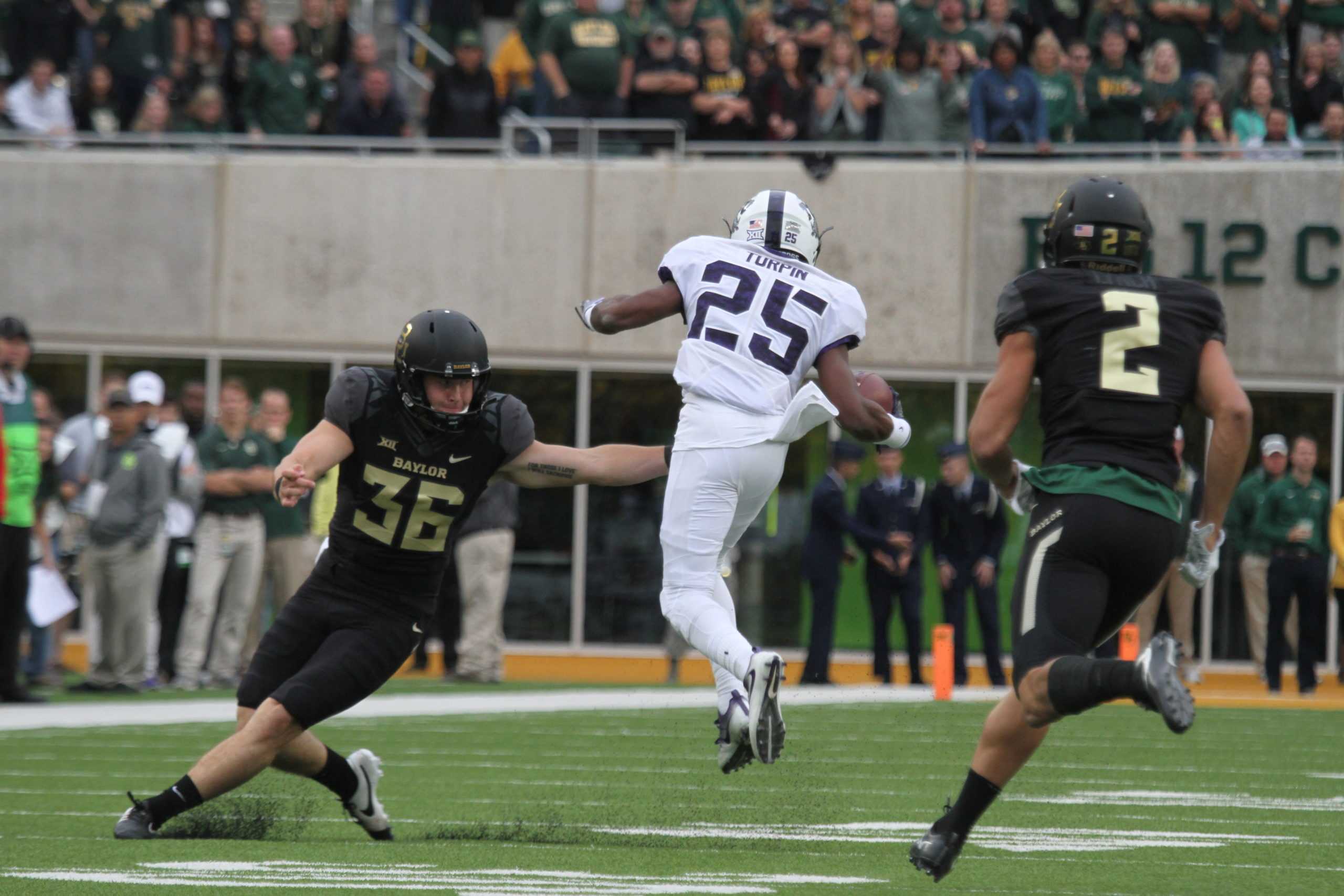 KaVontae Turpin had four carries for 40 yards rushing and a team-high six catches for 49 yards. “Turpin just gives the offense energy,” Patterson said. “He’s just one of those cool guys who I’m upset with off the field and always realy happy with on the field.” Turpin’s quarterback and running back were both excited about his performance. “Turpin is unreal,” Hill said. “Turpin is a big play waiting to happen,” Hicks said. TCU ran for a season-high 431 yards, seventh-most in program history and the highest total in 16 seasons under Patterson. 3. Brandon Hatfield bounces back TCU kicker Brandon Hatfield hit field goals from 26 yards and 39 yards on his only two attempts against Baylor. This is a serious improvement from Hatfield’s performance against Texas Tech, where he missed field goal kicks from 37, 32, and 39 yards. Part of Hatfield’s improved performance Saturday could be attributed to TCU kicking legend Jaden Oberkrom, who leads the Big 12 in made field goals with 79. Oberkrom said he went golfing with Hatfield on Monday and offered him some kicking advice. Hatfield is now 9-13 kicking this season. 4. TCU defense shuts down high-flying Baylor offense Baylor’s run game was No. 1 in the Big 12 and fourth in the nation going into Saturday’s game, averaging 299.3 yards per game. Four of Baylor’s players, including quarterback Seth Russell, averaged 45 or more rushing yards per game. The Bears had zero rushing yards on seven carries after the first quarter and finished the game with just 133 yards rushing on 45 carries against TCU. “Defensively, we knew we had to stop the run, and we did a nice job,” Patterson said. Cornerback Ranthony Texada’s pick six was the first one for TCU since Derrick Kindred’s against Kansas State last season. Baylor scored the first seven points of the game on the opening drive and didn’t score again until there was only 2:29 left before halftime. TCU went on a 31-0 run after Baylor’s opening score. 5. Adam Nunez pinned down the Baylor offense TCU punter Adam Nunez had two punts downed inside the 10 yard-line. He had a punt downed in the first quarter on the two yard line, and a punt downed in the second quarter at the three-yard line. “I think it made a difference being able to down the ball inside the ten yard line multiple times,” Patterson said. Nunez’s teammates agreed with their head coach. “Adam Nunez had a lot of punts inside the 20, so the field advantage really helped us out,” TCU safety Denzel Johnson said. TCU has a bye next weekend and next game will be back in Amon G. Carter against Oklahoma State November 18.
