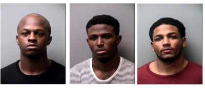 TCU running back Kyle Hicks (middle) and former players Bryson Henderson (left) and George Baltimore (right) were arrested on public intoxication charges this weekend. (Fort Worth Police Dept.)