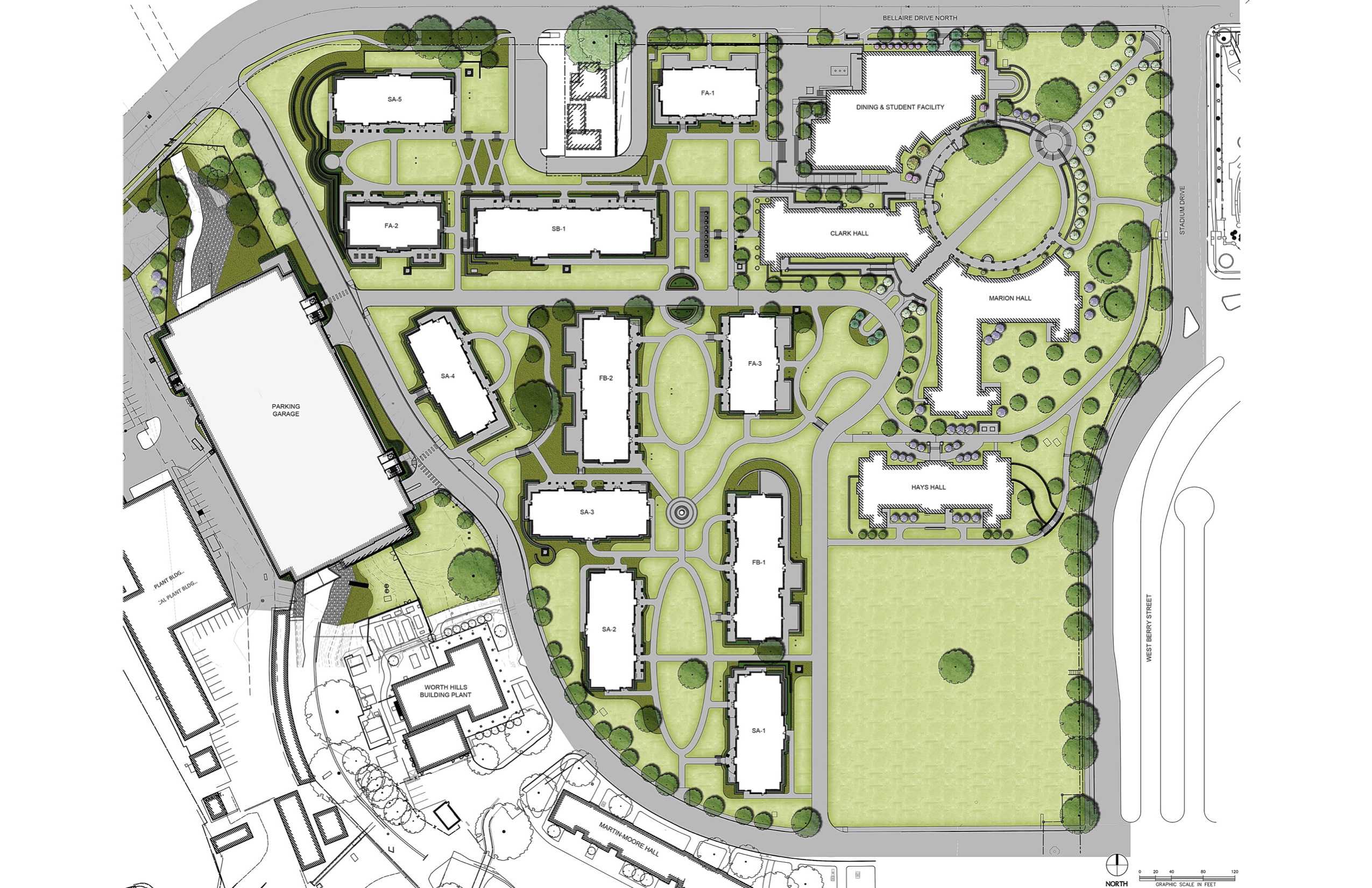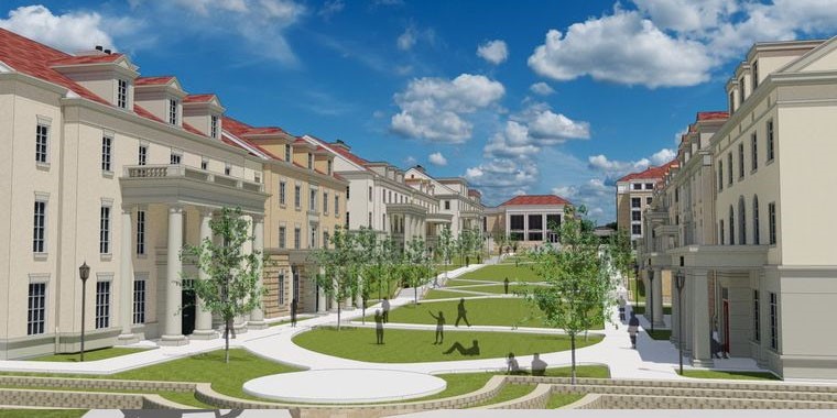 The cranes and bulldozers that have become part of the landscape around Greek Village will be gone earlier than expected–construction is two weeks ahead of schedule. Phase I of II of the Greek Village was set for completion on July 30, 2017. Despite rain delays last year, crews should be done July 14, said Harold Leeman, Director of TCU Facility planning and construction. Phase I of the Greek Village includes seven houses, which will accommodate 13 sororities and two fraternities. Phase I masterplan for July 2017: SA-1-5, FA-2, SB-1. “The progress is great,” Leeman said. “But in construction anything can happen.” Prentiss Burt, member of Sigma Alpha Epsilon chapter said he appreciates the effort the college is making. “They’re doing a good job and the best they can to make sure we have access to the houses,” Burt said. Danielle Bassetti, a member of Chi Omega, said the progress she had seen is “awesome.” “I’m in a sorority so I feel like we’re really a part of it and it’s a big thing for TCU,” Bassetti said. However, not all students said they liked the designs of the new houses. “I think they could have done better. I don’t like that the houses are all different,” said Matt Thompson, a member Pi Kappa Phi. “I think that you either have to make them all very unique or all the same, because little differences make it look weird, like they were trying to make it look alike but then they ended up not doing that.” In the next and final phase the former houses will be demolished where the four additional houses will go, which will accommodate the ten remaining fraternity chapters, expected to be completed by July 2018. The Fraternity homes that will be constructed from May 2017 until July 2018 are designated: FB-1, FB-2, FA-1 and FA-3. Once phase I and II are completed, the Greek Village will house all 25 of the University’s Greek chapters in one place. Photo courtesy of KSQ Architects. Illustrates the renderings of the homes that match closely with an additional home the Divine Nine which will be completing during the next phase.Photo courtesy of KSQ Architects.