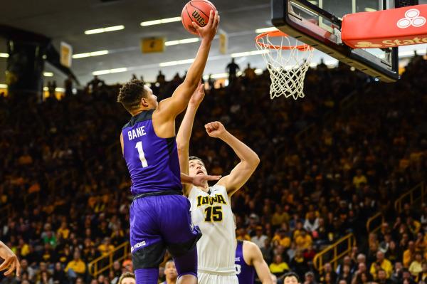 TCU guard Desmond Bane drives to the hoop during a 94-92 win over Iowa on Sunday (Photo Courtesy of GoFrogs.com)