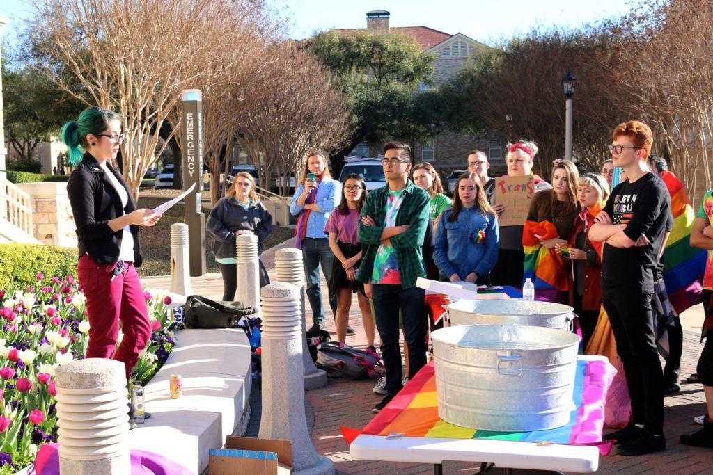 Students gathered in front of Scharbauer Hall for the LGBTQ rally as a part of TCUnity week.