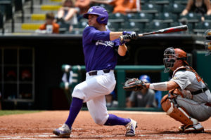 Update 7 p.m.: Due to inclement weather the opening regional games have been postponed until Saturday. Virgina and Dallas Baptist will play at 2 p.m. and TCU and Central Connecticut at 7 p.m. All games will be televised on ESPN3. If the Horned Frogs want to make a fourth consecutive trip to the College World Series, they’ll be doing it the hard way. TCU’s reward for garnering the No. 6 national seed is hosting one of the toughest regionals in the country with University of Virginia, Dallas Baptist, and Central Connecticut state coming to Lupton Stadium this weekend. “We feel very honored to have the privilege to host, it’s not something we take lightly,” TCU head coach Jim Schlossnagle said. “We look forward to a great weekend for baseball.” UVA has won 22 of its last 29 games behind .400 hitter Adam Haseley and Pavin Smith, who set the team’s single-season RBI record with 72. Both are projected to be top ten picks in the upcoming MLB Draft. The Cavaliers have won 42 games this season, the same number as the Frogs. DBU, a team that has clubbed 84 home runs, matched TCU, Florida, Louisville and LSU as the only teams with 40 wins in each of the past four seasons. The Patriots are also coming into Fort Worth on fire, winning 22 of their last 26 games. Central Connecticut State has won 13 of its 15 games and led the Northeast Conference in team ERA. “I don’t know Dallas Baptist’s RPI, but I know they’re really good because we see them all the time and play them all the time,” Schlossnagle said. “To be frank, Virginia was a team that more than deserved to be a very high seed and host a regional. Why that didn’t happen, I don’t know. Any time a program like that is a two-seed in any regional, it makes it very very strong. Central Connecticut has won 36 games.” The Frogs are 17-3 all-time in regional games at Lupton Stadium, and they’ve won six regional championships in the last nine seasons. Playing without Luken Baker The Horned Frogs are playing without superstar first baseman Luken Baker since he suffered a hairline fracture, a ligament injury and muscle tear in his left arm, requiring surgery that ended his sophomore season. “Obviously you can’t replace Luken Baker, but we don’t need to because everyone on this team knows their role and can do their job well,” pitcher Mitchell Traver said. “That’s a great bat to have in the lineup, but we’re confident in who we put out there.” The player filling Baker’s spot in the lineup has been freshman backup catcher Zach Humphreys who has primarily hit in the designated hitter spot since Baker’s injury. “He’s hit some home runs, a double, triple or two, but, it’s more about getting on base, as well as allowing Evan [Skoug] and Cam [Warner] and other guys to remain in their same spots in the lineup,” Schlossnagle said. “He handles the bat really well, he hits deep in counts, which we like, and he’s not afraid to take a walk. Having [Austen] Wade there at leadoff and if Humphreys can do what he does, then it sets the table nicely for Nolan [Brown], Evan, and Cam.”