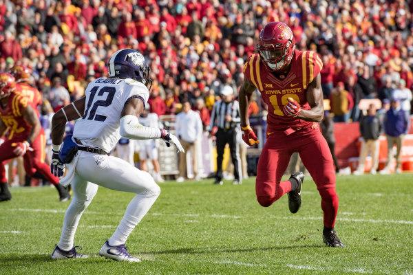 Iowa State wide receiver Hakeem Butler secures a catch against TCU cornerback Jeff Gladney. Photo courtesy of GoFrogs.com