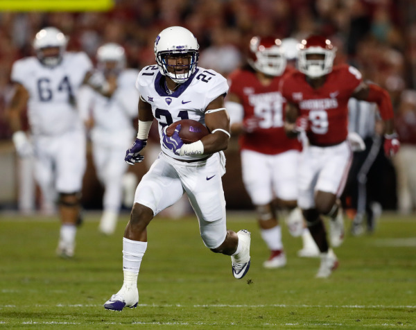 This has been a season of redemption for Horned Frog football. TCU is 5-1 this year against teams it lost to last season. That one defeat was to Oklahoma in Norman and now the Horned Frogs have a second chance. This game isn’t just for pride, the first Big 12 Championship Game since 2010 is on the line Saturday at AT&T Stadium. Patterson said Monday on a conference call with reporters TCU has to start a lot faster against OU. The defense will also have to stop the Sooners ground game. “We have to come in with a different attitude this time around because we were a little in awe of the situation, which I was surprised about,” Patterson said. Defensively, matching up better with Sooner running back Rodney Anderson is a must. The redshirt sophomore from Katy, TX gashed Patterson’s defense for 291 yards rushing and receiving with four touchdowns, two rushing and two receiving. “We needed to tackle the running back: Rodney Anderson is a good player and we need to do a better job against him because half the time we didn’t tackle him when he came out of the backfield,” Patterson said. “It’ll be a chess match just like the last one, we’ll have to start out a lot faster this time around.” Mistakes also hurt: Wide receiver John Diarse picked up an unnecessary roughness penalty on TCU’s first play from scrimmage, kicker Ryan Graf missed a 30-yard field goal and defensive end Mat Boesen was ejected early in the second quarter for kicking. TCU quarterback Kenny Hill said the missed field goal was a turning point as OU regained the lead, 10-7. “After we missed a field goal and then we went three and out on the next drive and then they went back and scored,” Hill said. “You know it’s those stops early; we got to put up points early and we got to be able to match them.” Patterson said that shouldn’t have rattled his veteran team, which includes 21 scholarship seniors. Boesen is coming off a record-setting performance against Baylor with 5 ½ sacks. The senior set TCU and Big 12 records, while being just a 1/2 sack short of an NCAA record. “Mat has a really good player on the other side in Ben Banogu, so it’s hard to double him,” Patterson said. “He plays with great energy, and he has a wrestling background, so he’s great with leverage and technique, plus, he has great speed.” The Horned Frog defense should be close to full strength. Defensive starters: safety Niko Small and linebacker Travin Howard, the team’s leading tackler, are expected back. Howard, the Horned Frogs’ leading tackler, made the trip to Texas Tech two weeks ago but did not play because of an ankle injury.