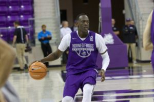 TCU forward Kouat Noi drive to the hoop during the Purple vs. White Scrimmage. Photo by Carolina Olivares