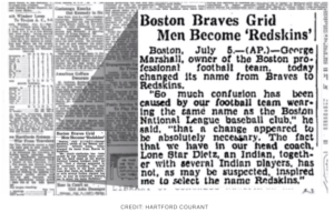 In a 1933 interview with the Associated Press, Marshall said he changed the name to avoid confusion with Boston’s baseball team, then known as the Braves.