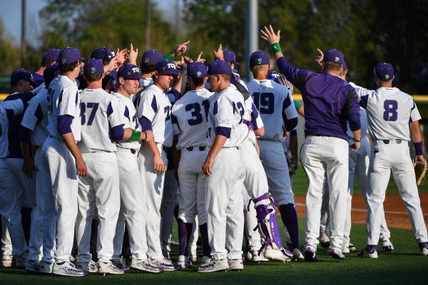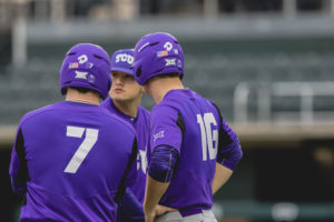 TCU baseball breaks the huddle ready to start a new game. Photo courtesy of GoFrogs.com