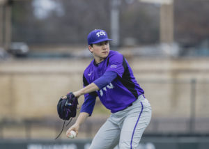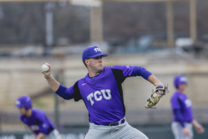 Horned Frog baseball has a chance to climb into the history books this season. If they go to Omaha they’ll be only the second team – Stanford (1999-2003) – to have five consecutive College World Series appearances since the NCAA went to its current tournament format in 1999. “If you’re a returning player, your time is short,” head coach Jim Schlossnagle said. “If you’re a new player, you don’t want to be a guy that is part of a team that doesn’t put us in a good position to get back.” The Frogs are only fielding three returning position players, junior first baseman Luken Baker, junior left fielder Josh Watson and senior right fielder Connor Wanhanen. Dalton Brown (31), Josh Watson (7), and Luken Baker (19) go through batting practice. Photo by Cristian ArguetaSoto Schlossnagle is unfazed. “I have a theory that the best organizations and teams reset to zero every year,” Schlossnagle said. “We were in this position two years ago, and I love the culture of our program and how the older guys help the new players and we’ve had that going on all year.” The three returning position players have been top contributors. Baker is the offensive linchpin. “He’s certainly going to be an anchor in our lineup every day and he’s going to play a lot of first base where he does a good job over there,” Schlossnagle said. Baker missed the last 21 games of 2017 after injuring his left arm. He was a 2016 Freshman All-American and is batting .355 with 103 RBIs in 114 career games. Luken Baker readies to hit in batting practice. Photo by Cristian ArguetaSoto “Everything has healed up 100 percent,” Baker said. “It was only about a three-month recovery, really quick. I’ve been back at full health for a while.” Wanhanen and Watson are also bright spots. Wanhanen became the full-time first baseman last year following Baker’s injury. He put up good numbers, hitting .281 and posting a career-high .430 on-base percentage that shook a sophomore slump. Watson enters 2018 looking for a junior year rebound. As a first-year student, he tied Baker for the club lead in home runs with 11 while hitting .280 and batting in 44 RBIs. Last season, he had one home run while hitting .239 with 38 RBIs. Josh Watson (7) and Connor Wanhanen (16) exchange ideas during batting practice. Photo by Cristian ArguetaSoto “He’s been working just as hard as anyone else if not harder, and some of the stuff he’s been working on you can see the results already,” Wanhanen said of Watson. “He’s the type of guy that’s going to continue to put his head down and work, so it’s going to show up on the field this spring.” Schlossnagle sees the switch-hitting Watson playing a crucial role in 2018. “He made some adjustments, played some in the summer,” Schlossnagle said. “Made some adjustments in the fall with Coach Mosiello, played a good fall.” Expect fresh faces at second base, shortstop, third base, center field and catcher. “With three-quarters of our infield gone from last year, all of those guys being seniors, that’s a transition just from an experience standpoint,” Schlossnagle said. “I like our talent level, it’s just a matter of getting them out there in their first college game and moving forward from that.” Catcher sophomore Zach Humphreys is poised to take over behind the plate. He hit .267 and drove in 19 RBIs in a limited role last season. First-year student Coby Boulware will likely be fielding balls at second. Sophomore transfer Connor Shepheard could be manning the hot corner. Outfield junior transfer Johnny Rizer will likely begin the season patrolling center field. Shortstop has been locked down by Grandview native, first-year student Adam Oviedo. He was named the District 8-4A MVP following his senior season at Alvarado High School. TCU starting pitcher Jared Janczak is looking forward to watching them grow. “It’ll be fun watching them perform, definitely Adam Oviedo, man he’s talented at shortstop,” Janczak said. “He’s going to be really good three years from now, and it’s going to be fun watching him out there.” Schlossnagle said he’s fine with the growing pains because of the luxury his pitching staff provides him. “The game is about pitching and defense.” TCU enters 2018 with ace All-American Janczak, Freshman All-American Nick Lodolo, and 2017 USA Baseball Collegiate National Team member Sean Wymer in the weekend rotation. “If the season started today, those would be the three: Janczak, Lodolo, and Wymer,” Schlossnagle said. “I’ve always said the game starts and ends with starting pitching.” Wymer had a solid season as reliever leading the team with 30 appearances out of the bullpen and posting a 6-4 record with two saves to go along with a 2.10 earned run average. Starting pitcher Sean Wymer goes through his windup in practice. Photo by Cristian ArguetaSoto “We would love to keep Sean in the rotation,” Schlossnagle said. “That’s a great spot for him, which opens up some innings to be had in the bullpen.” Schlossnagle said two early candidates for the weekday rotation spot are first-year student Russell Smith and sophomore Jake Eissler. Smith set a school-record with a 0.44 ERA and only eight hits allowed as a senior at Midlothian High. He also totaled 100 strikeouts and threw two no-hitters. Eissler struck out 38 batters in 37 2/3 innings pitched and went 4-0 with a 5.02 earned run average in his first season as a Horned Frog. “Jake Eissler has made some big strides and pitched a lot for us as a freshman in a limited role, but his stuff has taken a jump,” Schlossnagle said. “Not sure what role he’ll be in, but he’s going to play a huge role in the pitching staff.” Sophomore pitcher Jake Eissler winds up to pitch. Photo by Cristian ArguetaSoto In the bullpen, Schlossnagle said the team “needs to solidify some things” in front of All-Big 12 closer Durbin Feltman, who had the most saves, 1