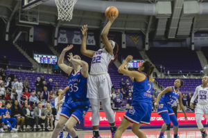 Senior Amy Okonkwo was named to the preseason All Big-12 Team. Photo by Cristian ArguetaSotoThe Horned Frogs enter the 2018 season looking to continue the momentum from their deep postseason run last spring with a roster that is both experienced and physical. Led by head coach Raegan Pebley, TCU returns all five of the starters that compiled 23 wins and a semifinal appearance in the WNIT. Sophomore Lauren Heard and juniors Jayde Woods and Kianna Ray will anchor the backcourt, while seniors Amy Okonkwo and Jordan Moore will lead the frontcourt.Lauren Heard (#20) will look to build on a freshman season in which she started 18 games. (Photo courtesy of GoFrogs.com)Both Okonkwo and Moore averaged double-digit points last season and both come into their senior seasons with high expectations. Okonkwo was named preseason Big 12 All-Conference and Moore was placed on the Lisa Leslie Award watch list, which recognizes the nation’s best center. “They’re not just tall drinks of water out there,” Pebley said. “They’ve become more skilled players on both ends of the floor, more complete players, they’ve trusted the process and their development.”Jordan Moore averaged 13 points and 6.8 rebounds last season. Photos by Cristian ArguetaSotoThe seniors also headline the physicality that Pebley raved about, as she called this team “the most physical she has coached.”The team will look to their physicality as they compete in a Big 12 conference headlined by its size. Baylor’s Kalani Brown, the conference’s preseason player of the year, stands at 6”5’ and averaged 20.1 PPG last season. The Bears also boast 6”4’ junior Lauren Cox and Texas’ Charli Collier was named the Newcomer of the Year standing at 6”5’.“The Big 12 is a league that whatever teams post players aren’t in foul trouble, you got a chance to win,” Pebley said. Along with eight returning players, the Horned Frogs welcomed four first-year players and two transfers in the offseason. The team’s only loss outside of graduating seniors Toree Thompson and Sydney Coleman was junior guard Amber Ramirez, who transferred to Arkansas. The incoming class includes post players Becky Obinma and Yummy Morris, who Pebley hopes will add depth and length off of the bench. Both stand at 6”3’. “Having length is great but only if length is good,” she said. “They’ve got to have talent.”Senior South Dakota transfer Jaycee Bradley will have to sit out a year due to NCAA rules but sophomore Oregon transfer Anneli Maley will be immediately eligible.Kianna Ray is one of five returning starters from a team that made the semifinals of the WNIT. Photos by Cristian ArguetaSotoMaley, an Australian native, is a 6”2’ guard/forward combo that will add a versatility and tenacity to the team. Pebley said that she will increase TCU’s defensive depth with her ability to guard both guards and forwards.The team will also look to Maley to force turnovers and play smart, two tenants of any good team.“She’s somebody that’s going to get deflections, she’s going to get steals, she’s an incredible rebounder and she takes smart shots,” Pebley said. “She takes care of the ball and doesn’t lose you possessions. She only gives you possessions.”The Horned Frogs will begin their season tomorrow against Duquesne, a team projected to win the Atlantic 10 Conference. The Dukes have four players on the conference’s preseason team and will provide a tough first test for the Horned Frogs. Pebley said they wanted to improve their strength of schedule this season in order to improve their RPI, a metric used when selecting teams for the NCAA tournament in the spring.“We scheduled them early intentionally because of that RPI they have,” she said. “We wanted to start the season off with a high RPI team to help our RPI as it moves forward.”Tip-off for the 2018-19 season is set for noon at the Schollmaier Arena.