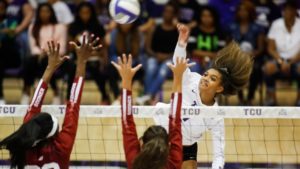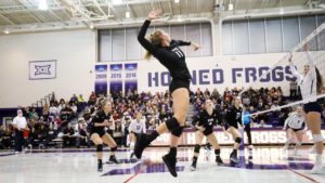 McCall’s strong first season has her head coach hopeful for the team’s future. Photo courtesy: GoFrogs TCU Volleyball stars outside hitter élan McCall and middle blocker Katie Clark dominated the Big 12 this year, despite playing in just their first collegiate season. Both players were high school standouts, but developed later in their careers and the recruiting cycle. Head coach Jill Kramer said this allowed TCU to sign them before programs with higher acclaim took notice of them. Despite the late development, both players finished as some of the best to ever play at their respective high schools. McCall, a Leander, Texas native, played at Rouse High School. She totaled more than 1,000 kills and digs in her career and led her team to a state championship her senior year. Selected for the 2017 Under Armour Girls High School All-American team, she was ranked No. 76 on the PrepVolleyball.com’s Senior Aces list. Despite living about 26 miles from the University of Texas, one of the nation’s top volleyball programs, McCall was not recruited heavily by the Longhorns. Knowing she wanted to play collegiate volleyball since her sophomore year of high school, she felt at home in Fort Worth, making her transition easy. Clark attended Arlington High School, just 15 miles outside of Fort Worth and had TCU on her mind since day one. She finished her career with a school-record 2,329 kills, leading her to be ranked No. 53 on the Senior Aces list and the No. 11 player in Texas by FloVolleyball. Along with her record kills total, Clark also had outstanding numbers when it came to blocks, digs, and service aces. Kramer called her one of the best “utility” players in Texas when she recruited her. Despite coming into Fort Worth with already outstanding pedigrees, both McCall and Clark knew they had something to prove as the new kids on the block. “Here, everyone’s held accountable,” McCall said. Clark said that while many of her high school teammates may have been playing the sport simply for fun, each of her college teammates has a specific job. “In college, everyone’s here for a purpose,” Clark said. A little overwhelmed at first, each player said that the veterans on the team went above and beyond to make sure they would have the smoothest transition possible into college life and athletics. “Everybody’s so open and friendly,” Clark said. “They’re always willing to help you and always there for you.” McCall made her presence known right away. The Horned Frogs opened the season with four matches as part of the Cowtown Classic and the young outside hitter totaled 59 kills and won Co-MVP of the event with her teammate, middle blocker Anna Walsh. Outside hitter Élan McCall’s hot start had TCU at 8-3 going into conference play. Photo courtesy of gofrogs.com McCall went on to have double-digit kills for the next 12 matches, earning four Big 12 Freshman of the Week awards in the first six weeks of the season. Clark did not start the season on quite that kind of track. Battling injuries that had plagued her through high school, the middle blocker was limited for all of non-conference play and into conference, totaling just 55 kills in her first 10 matches combined. “When I first came in, it was kind of hard to accept the fact that I couldn’t play yet,” said Clark. “I took it day-by-day. I just had to trust the process.” Clark trusted the process as she dominated the seventh week of Big 12 play. She was awarded Big 12 Offensive Player of the Week and Big 12 Rookie of the Week after totaling 17 kills in a five-set loss to No. 4 Texas and a career-high 20 kills in a four-set victory over Texas Tech. This was only the 10th time in Big 12 history that a rookie had won both awards in the same week. After battling injury herself, middle blocker Katie Clark gave TCU life while McCall missed time with injury. Photo courtesy of gofrogs.com Just as Clark was heating up, McCall went down with an injury of her own. She would go on to miss or be limited in seven matches, five of which the team lost. Although McCall missed time, she knew the struggle would make her a better player in the future. “I just knew this was going to help me in the long run,” said McCall. Once McCall was able to return, the young duo shined together. TCU won two of their final four matches during that time, and the first-years combined for 102 kills. McCall also had four-straight double-doubles and earned both Big 12 Offensive Player of the Week and Rookie of the Week in the second to last week of conference play. McCall would finish with a team-high 370 kills on the season, while Clark finished third on the team with 192 kills and 52 blocks. Although the Horned Frogs missed the NCAA tournament with a record of 15-12, the last four matches showed what kind of offensive firepower and success TCU could find when their team played together at full health. After the season, McCall was a unanimous selection for the All-Big 12 First Team and All-Big 12 Rookie Team. Although Clark did not receive any awards, Kramer knows that her strong play will be rewarded in the future. “We’re going to see a lot of great things happen while we’re still here,” Kramer said. “The future’s bright for our program. It’s something to be excited about.”