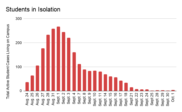 At this month’s peak, 267 students were isolated, or separated from others, after testing positive for COVID-19.