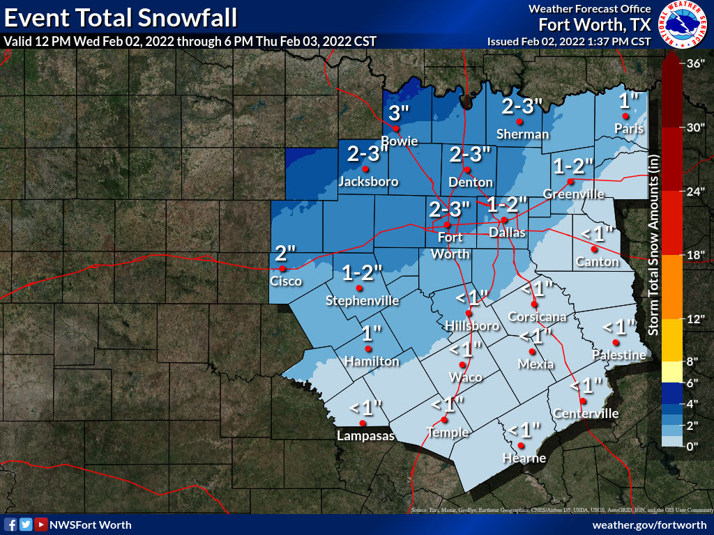“Snow and Ice accumulations are both going to be approximately two to four inches. Along with this, the weather will have hazardous effects on roads and could greatly affect commutes,” according to the National Weather Service Fort Worth.