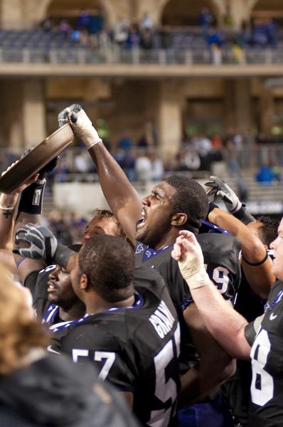 In 1915 the Horned Frogs battled the SMU Mustangs for the first time in a game that later became known as the Battle for the Iron Skillet. Ninety-five years later the Iron Skillet is getting even hotter. Senior safety Jeremy Kerley said he wasn’t sure what the skillet was or what its history was when it was displayed at a press conference Tuesday. “That’s the big rusty skillet…I had no history of the iron skillet game or iron skillet or anything,” Kerley said. The “rusty skillet” tradition started during the post-World War II era when college football was booming in popularity. The tradition died when the skillet was misplaced over the years until, in 1993, the student bodies from both universities decided to revive the Iron Skillet tradition. The Iron Skillet is given to the winning team after each game between the rival schools. The Frogs had first possession of the most recent edition of the trophy after their 21-15 win in 1993. Quarterback Andy Dalton said that a strong rivalry exists between SMU and TCU, especially now that the SMU program is on the rise. Dalton said he wants to make sure the skillet stays on the TCU side. In 2005 the Horned Frogs upset BCS automatic-qualifier and powerhouse University of Oklahoma, then ranked No. 7, by a margin of 17-10. Just a week after the upset over the Sooners, the Frogs traveled to SMU, lost to the Mustangs 21-10, surrendered possession of the Iron Skillet and their six-game winning streak against the Mustangs. Head football coach Gary Patterson said the team’s fresh line-up would help bury the past. “We didn’t get our heads out of the clouds after the Oklahoma win,” Patterson said. “This is the first year we don’t have somebody that was part of that game.” The Frogs’ loss to the Mustangs was their only loss during the 2005 season and the only loss to SMU under Patterson. As head coach, Patterson has won seven of the eight games he has coached against the Mustangs. “SMU is a good football team and it’s always a war, always a war when we play over in (Gerald J.) Ford Stadium,” Patterson said. The Frogs currently have possession of the skillet after recapturing it in 2007. The past three games have a combined score of 108-28, the most recent game being a 39-14 TCU win last season. Senior tight end Evan Frosch said the rivalry was not so much about the keeping the skillet as it was about winning the game and keeping the season the way the Frogs want it to be.